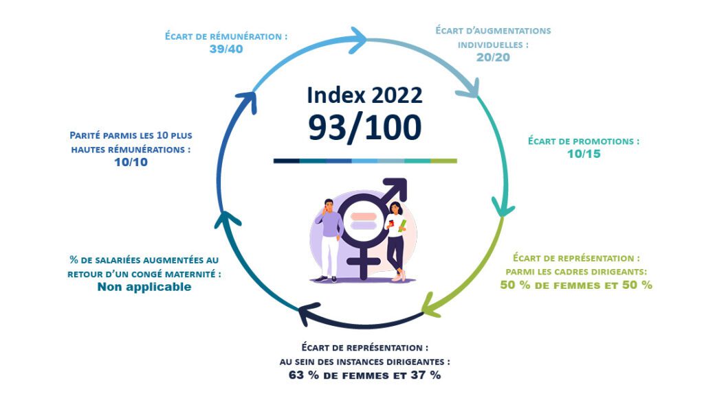 Index de l’égalité femmes / hommes : 99/100, détaillé ainsi :